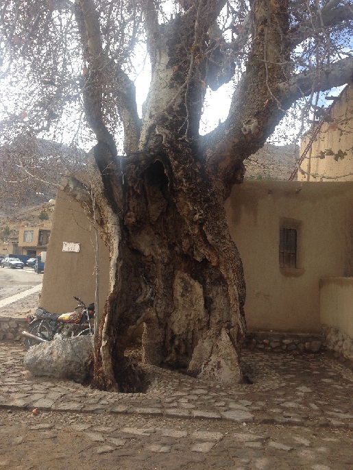 چنار کهنسالی بر دهانه قناتی در قلعه بالا