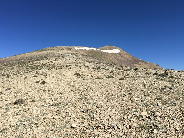 روی خط الراس ، قله توچال، با برف های تیرماهی اش، که سریع ذوب می شوند