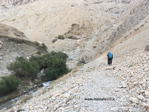 فرود از فراز گلوگاه آبشار، تا ده آبنیک، 45 دقیقه پیمایش شد.