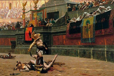 گلادیاتوری بر اجساد قربانیان خود در یک کلوسیوم رومی