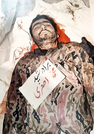 پیکر درخون شهیدی از شهدای جنگ هشت ساله خسارتبار عراق و ایران