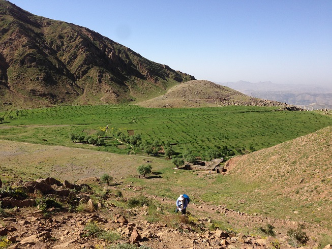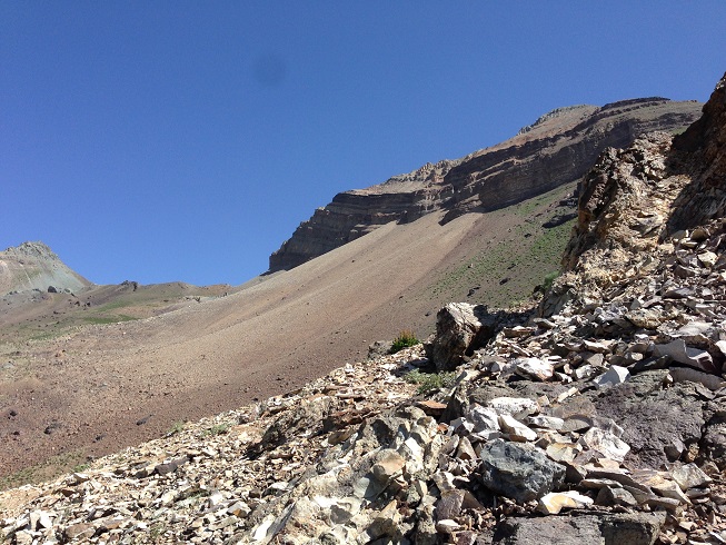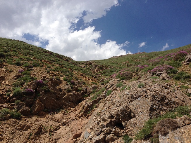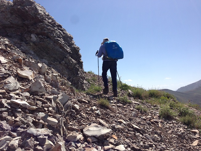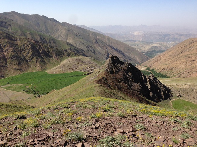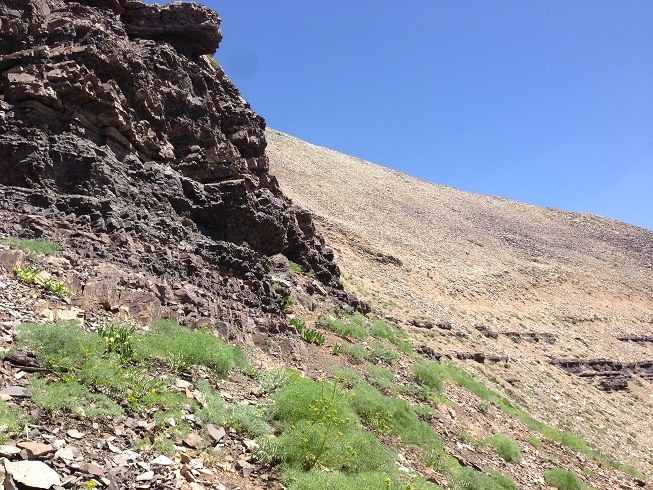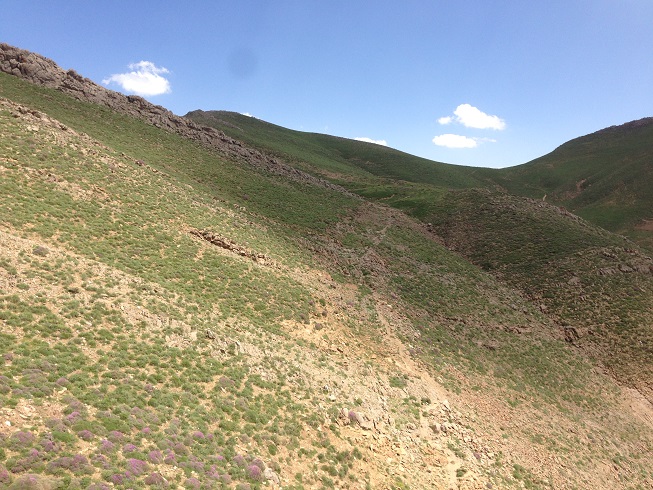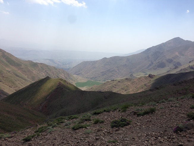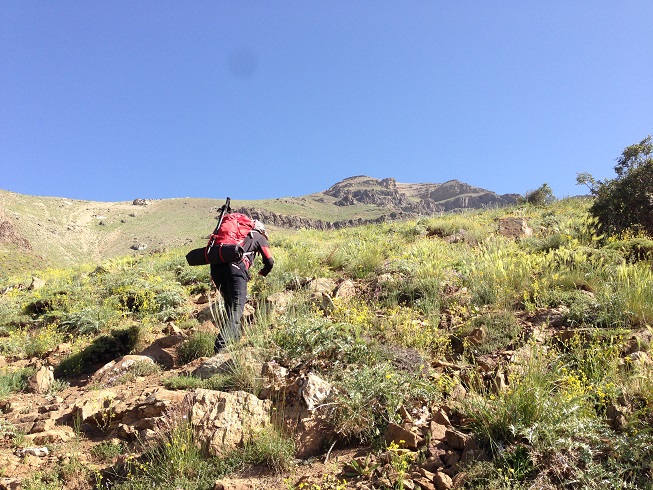 تا قله هنوز یک ردیف دیگر از این صخره های افقی داشتیم که جلویم خود نمایی می کرد، تا قبل از آن باید از یک شیب تند می گذشتیم، آمدن نفر سوم فرمان حرکت بود و من راهم را دوباره در پیش گرفتم تمام حواسم به تکیه نوک چوب دستی ام به زمین و تکیه کف پایم با زمین بود که مبادا هیچکدامش لیز بخورد، که لیز خوردن همانا و سقوطی بلند در دره در پیش رو بود؛ مسیر حدود پنجاه متری را طی کردیم و به صخره دوم رسیدیم، پای آن هر سه مردد بودیم که باید از کجایش گذشت؛