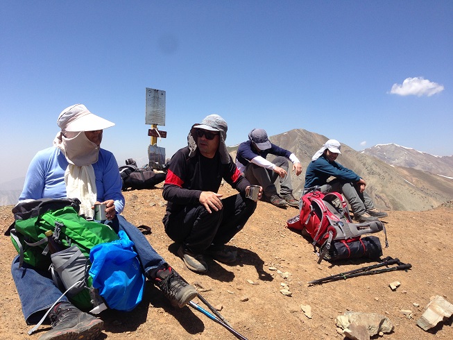 دلهره تمام وجودم را دوباره داشت در تسخیر خود در می آورد، احساس دلهره ایی خیلی بیشتر از ترسی که پایین صخره ها و قبل از عبور از آن قطعه سخت و نفس گیر داشتم؛، لذا نه کوله ام به زمین گذاشتم و نه چوب دستی، دوستان بار بر زمین گذاشتند و نشستند و شروع به خوردن چای و خرما کردند، دوستم گفت لیوانت را بده برایت چای بریزم، گفتم من نمی خوردم، به من خرما تعارف کرد با شدت بیشتری گفتم که چیزی نمی خورم،