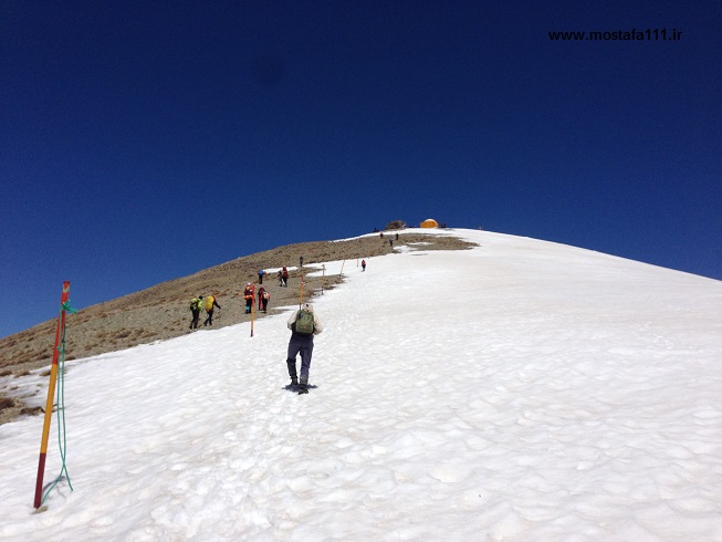 این بار مسیر یال امیری از مبدا دربند، راه ما را به سوی قله باز کرد، مسیری که نسبت به هفته قبل باز هم از برف ها زایل شده بود، و همچنان خورشید برف ها را لاینقطع ذوب، و روانه دشت می کند و لذا به جز چند مسیر کوتاه که از برف گذشتیم، بقیه مسیر خشک، و انتظار می رود برای هفته بعد، همنوردان ما در این مسیر، دیگر برای رسیدن به قله پا بر هیچ برفی نگذارند، چرا که با این روند تابش خورشید، این چند لکه باقی مانده از برف زمستانی نیز آب خواهد شد، و دیگر نشانی از زمستان در زیر پای همنوردان باقی نخواهد ماند.