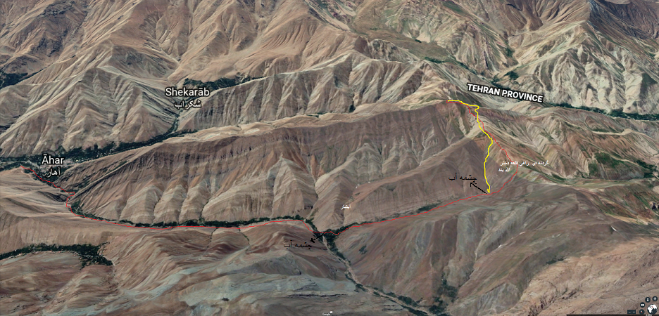 - کل مسیر از ساعت 5 و 45 صبح تا گردنه یعنی ساعت 8 و 28، در حالی طی شد که ما در حاشیه یال قله قلعه دختر در حرکت بودیم، این یال در سمت چپ، ما از آهار تا گردنه همراه ما بود، و در گردنه با گردش به چپ بالا رفتن از یال اصلی منتهی به قله را از سمت شمالی اش آغاز نمودیم،