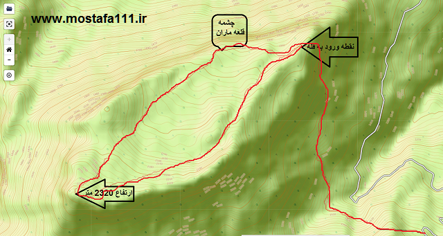نقشه مسیر حرکت به سمت قله قلعه موران