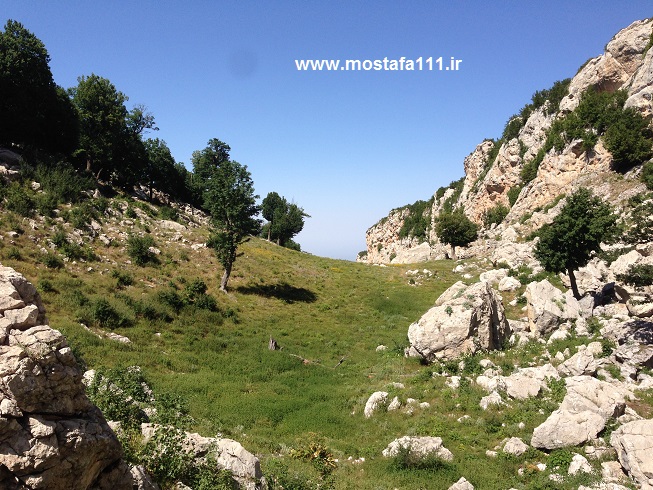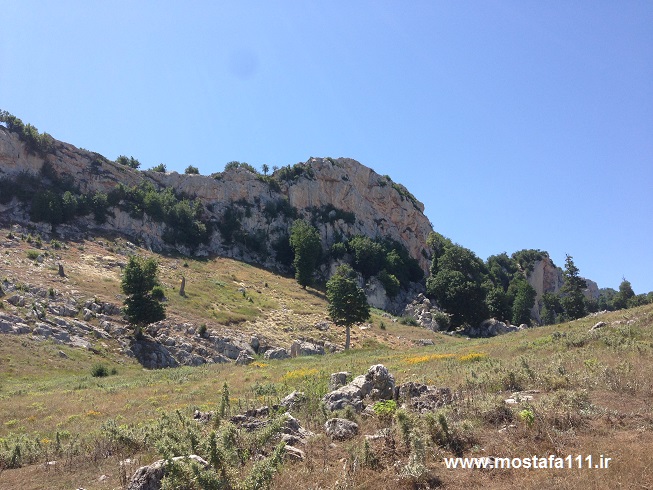ساعت 11 و 50 صبح ما در دشتی بودیم که پاکوبی که ما را از صخره ها به زیر آورد و این هم تنها راه ورود به دشت هست، ما را در امتداد یک پرتگاه صخره ایی که در سمت راست ما قرار داشت و در امتداد جاده رامیان به علی آباد کتول کشیده شده، ما را به سوی تنها چشمه آبدار این دشت در بالای آبشار پشمکی می برد، که ریزش های زیر پای خود را باید توجه کرد، زیرا سقوط از آن شما را از یک دیواره 300 متری به زیر خواهد افکند.