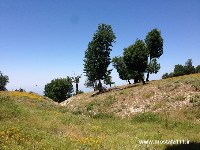 درختان بلند بر پهنه سه هزار متر مربعی قله قلعه ماران
