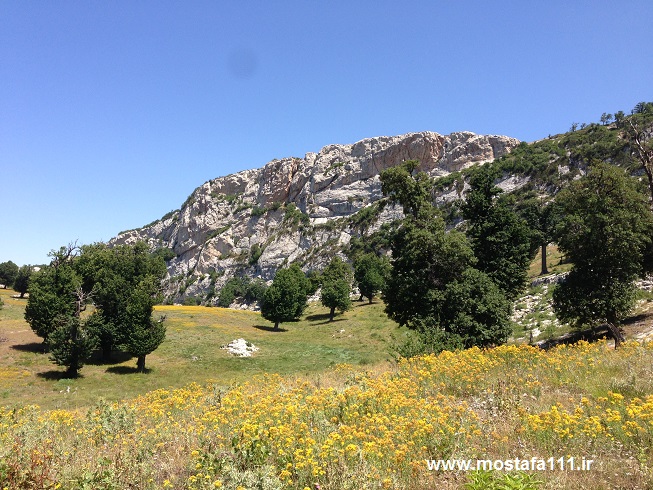 خوشبختانه این چشمه الان که ما از آن دیدن کردیم، آب داشت و ما بعد از برداشت از آن راه خود را به سمت جنوب کج کرده و حرکت شرقی – غربی ما به حرکت در مسیر شمالی - جنوبی تغییر جهت داد. در میان دشت گل های زرد بالای قله، راه خود را به سو منطقه ی جنگلی رو به رو در سمت جنوبی دشت سه کیلومتر مربعی قلعه ماران، که در واقع بلندترین نقطه این قله در آن محل قرار دارد، حرکت کردیم.