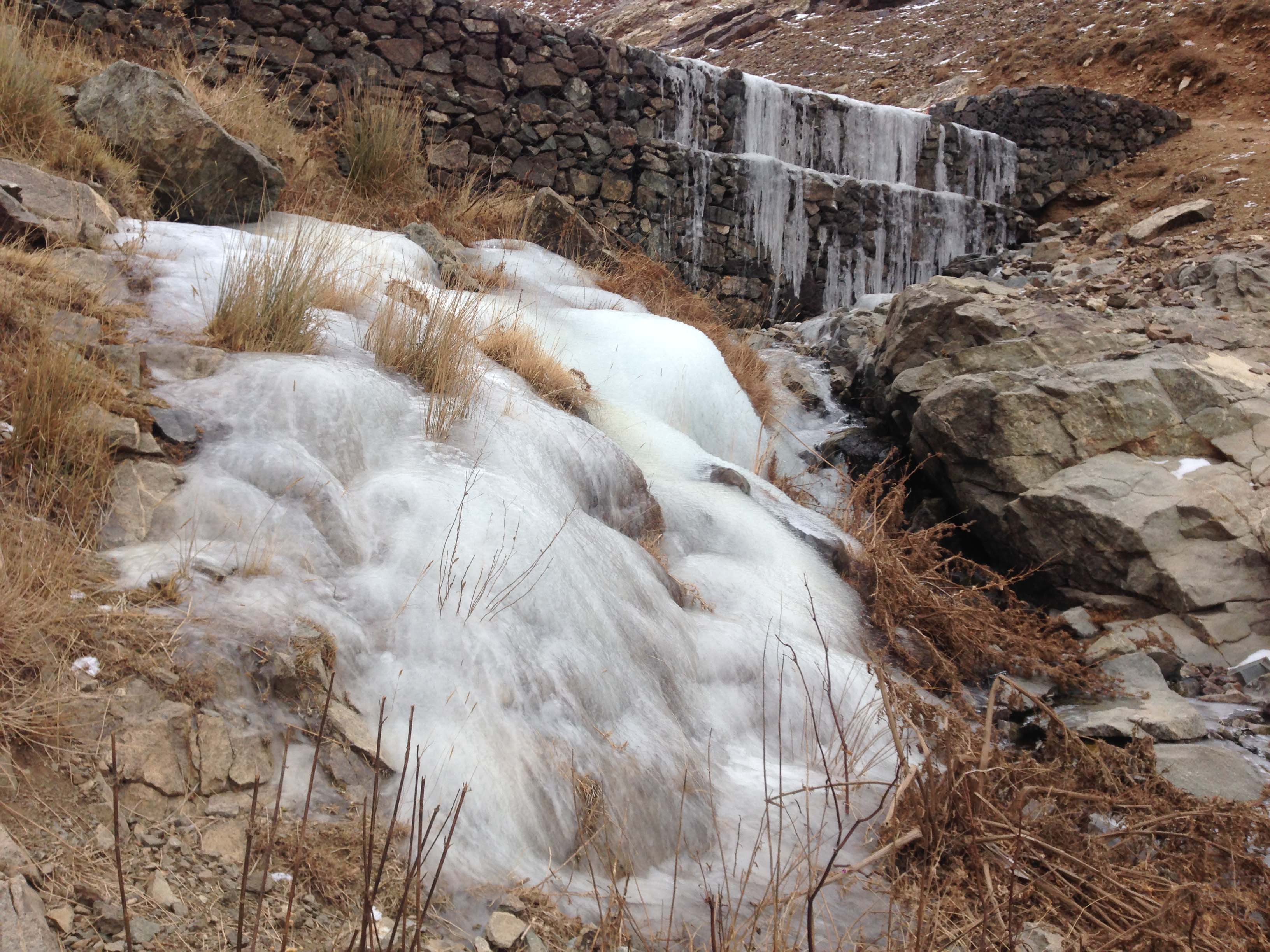 آب های چشمه پیازچال که تبدیل به قندیل های یخ شده اند