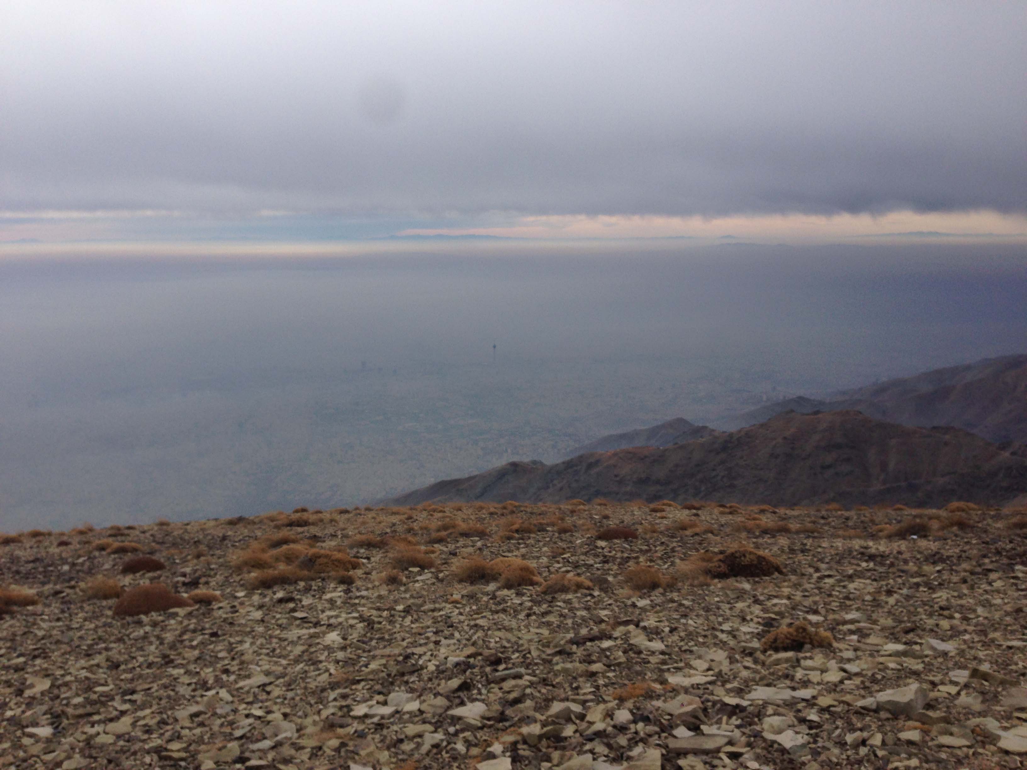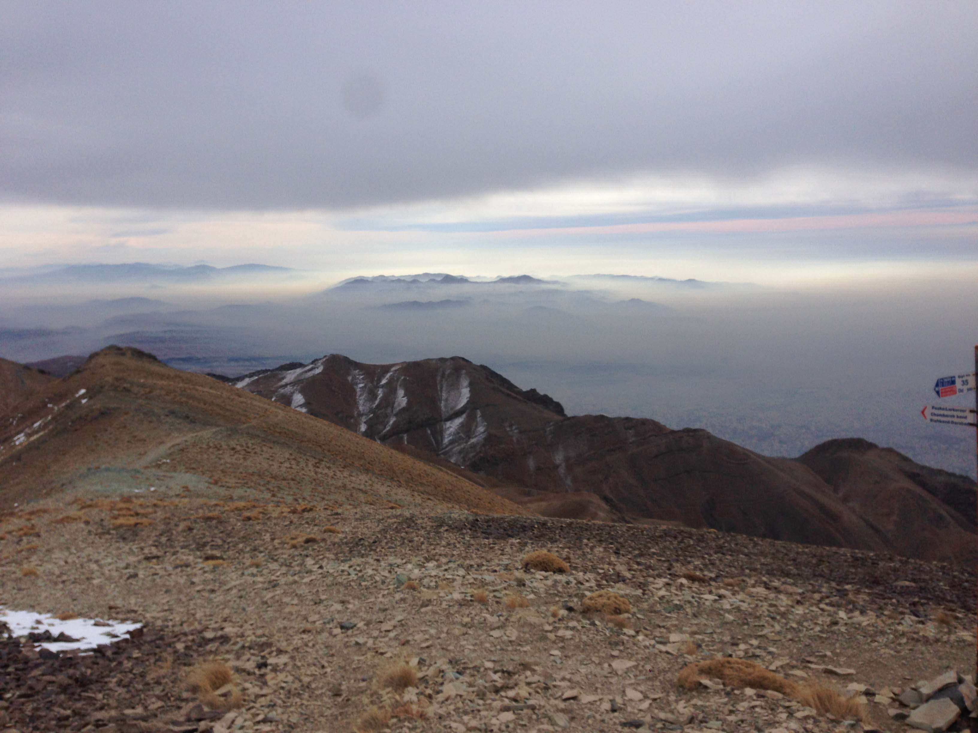 روبرو یال پیازچال و فضای مه گرفته تهران
