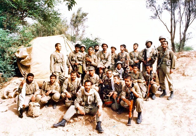 شهید محمد کاظم عرب در کنار دوستانش در جنگ