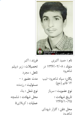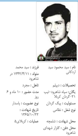 شهید محمود تیموری - ابرسج - شلمچه - کربلای 5