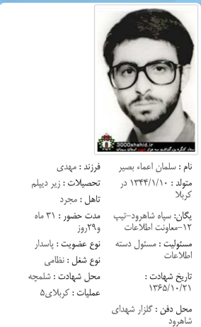 شهید سلمان اعما بصیر - شلمچه - کربلای 5