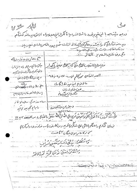 صفحه اول وصیت نامه شهید محمد کاظم عرب