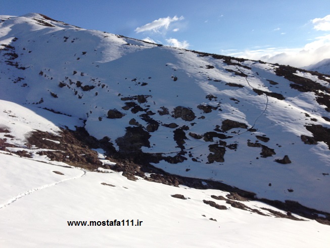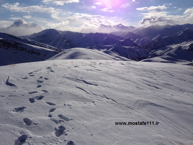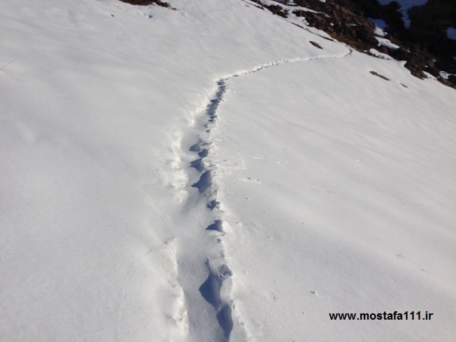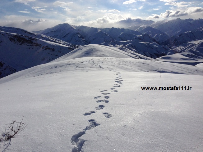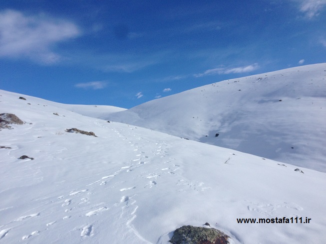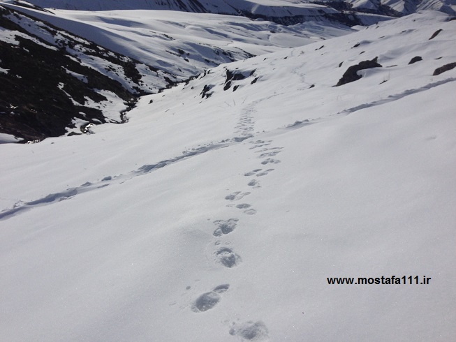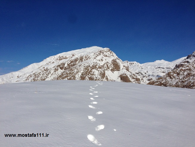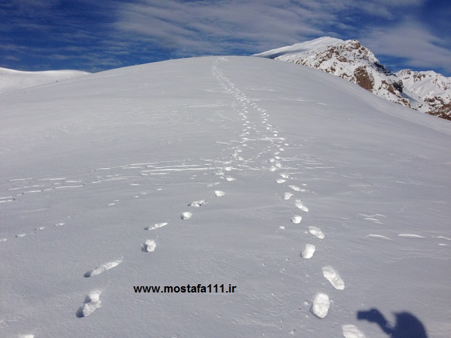 رد پایی بر برف پیش به سوی قله کهار ناز