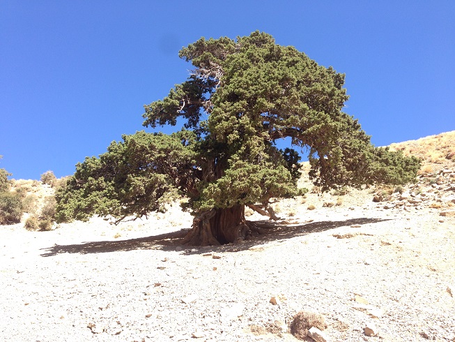 حال ما مشتاقانه به دیدار چنین درختی می رفتیم، در حالی که تا پیش از دیدنش، واقعا تصور این میزان عمر برای آن، معمایی لاینحل برایم بود، که حل آن مشکل، و باورش سخت بود، اما باورنکردنی های زیادی در زندگی ما هست، که در ذهن ما هم نمی گنجد، ولی واقعیت دارد، بسیاری از اعتقادات ما بی اساسند و ما آنان را بر پیش فرض های بی اساس خود آنچنان استوار می بینیم که خلافش را هرگز باور نمی کنیم، اما در مواجهه با حقیقت، چنان این اعتقادات فرو می ریزد، که به طرز بی حسابی انسان در می ماند. مشتاق دیدار این درخت کهنسال هستم، درختی که رشد آن یک میلیمتر در سال است، و اکنون با چنین رشدی به جایی رسیده که چند نفر باید به دور تنه اش بغل باز کنند تا بتوانند حقله ایی انسانی بر دورش زد.