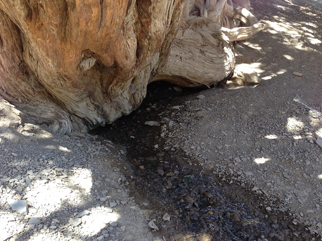 در پای این درخت می توان آخرین چشمه ها را قبل از قُور (یا قله) دید، که سر از ریشه درخت و کف دره بر آورده اند و گوارا ترین آب ها را به ساکنان این منطقه هدیه کنند، و آب نوید زندگی برای وحوش را می دهد و انسان در اینجا نوید مرگ و نیستی برای طبیعت، که مهمترین دشمن این طبیعت بکر انسان است که به چشم بهم زدنی می تواند حاصل زحمت هزاران ساله طبیعت را به باد فنا دهد، و اکوسیستم و چرخه آن را یک شبه برهم ریزد.