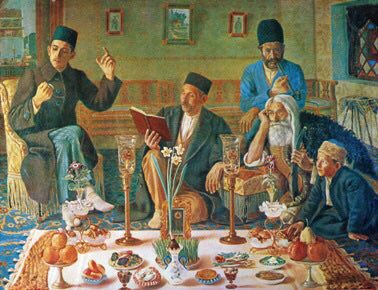 نگاره ایی از سفره پر برکت هفت سین توسط نگارگر ایرانی کمال الملک