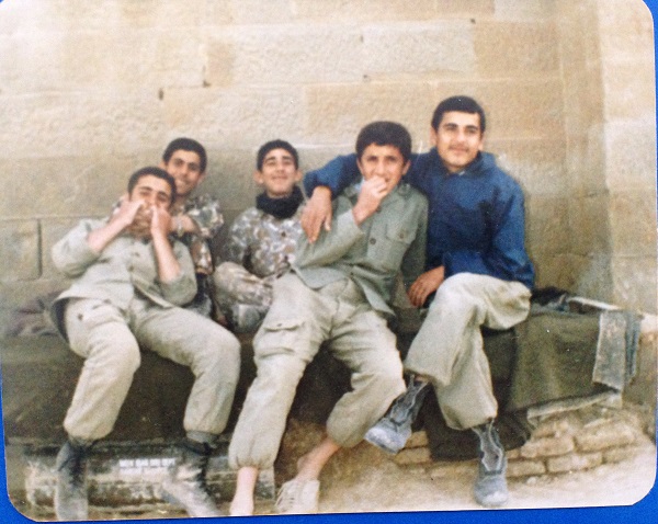 شهید علی اصغر پاوزکی در میان همرزمانش