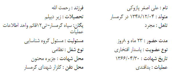 مشخصات شهید علی اصغر پازوکی