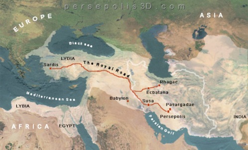 نقشه جاده شاهی که سرزمین های ایران باستان را به هم وصل می کرد