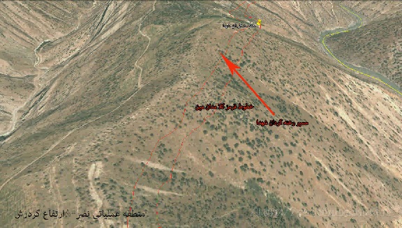 نمای بالایی از قله گرده رش و خطوط مین گذاری شده آن