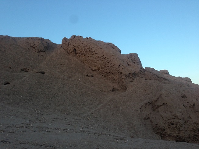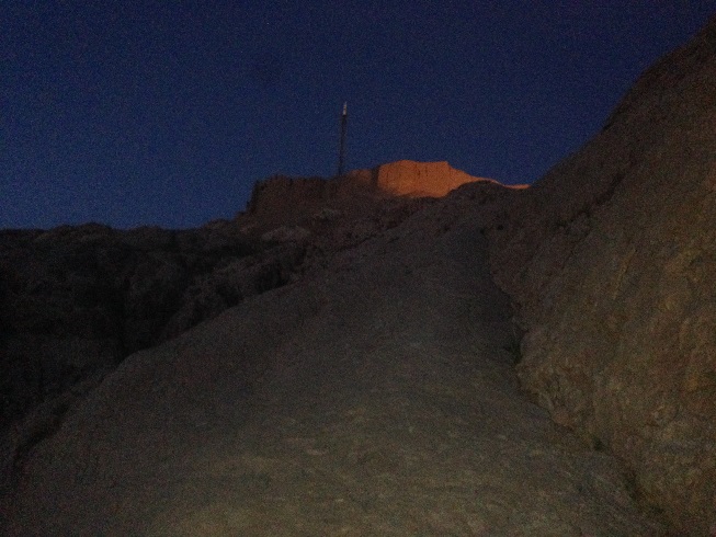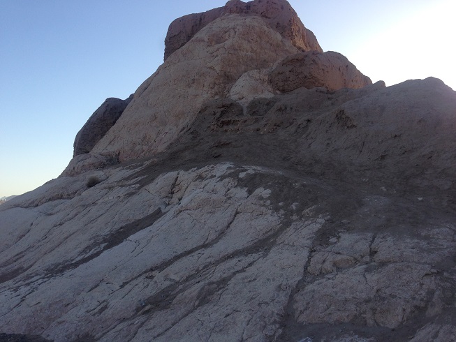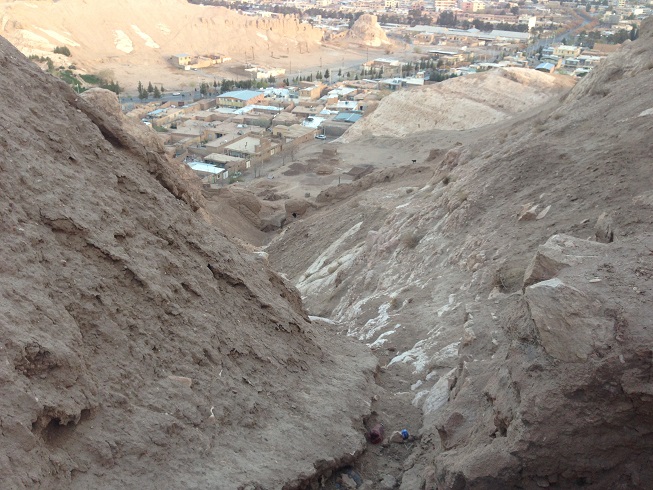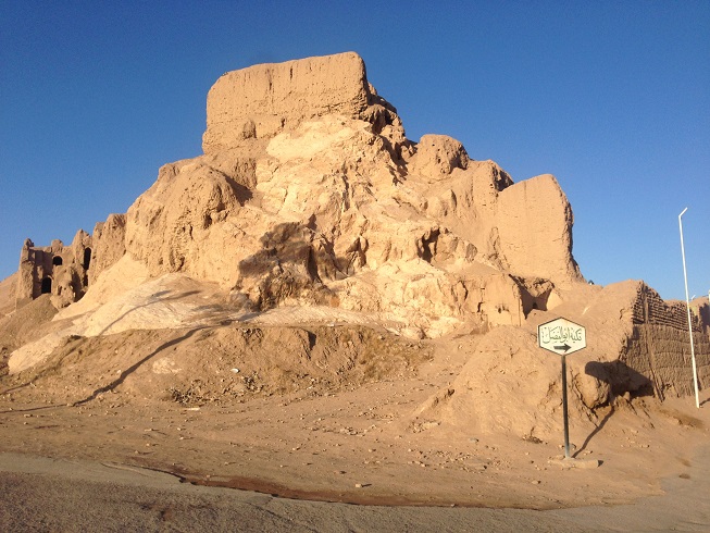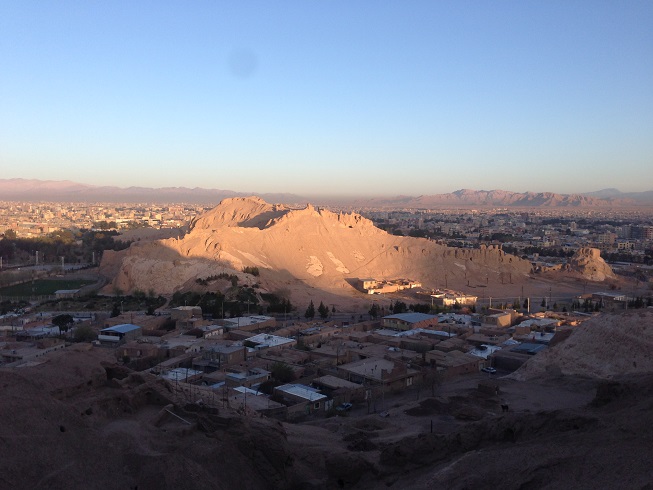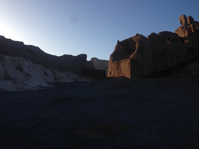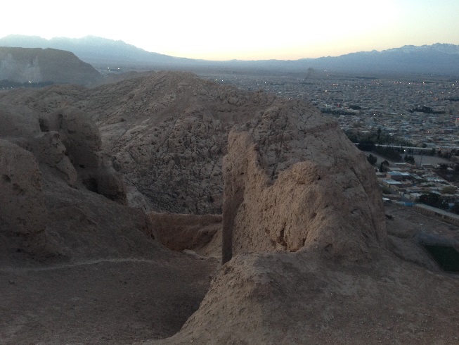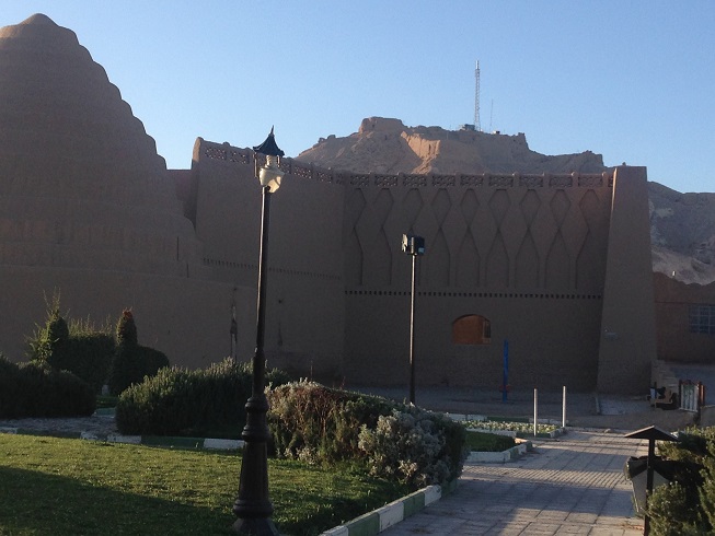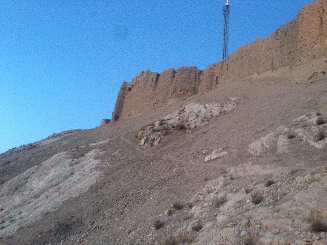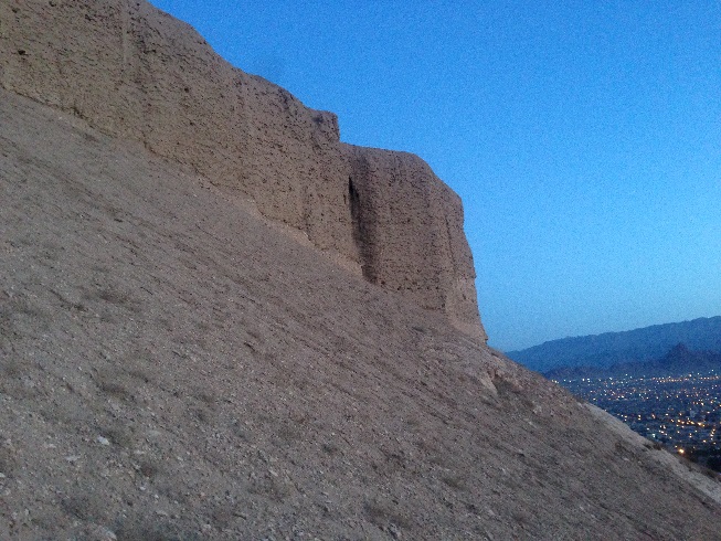 طبق معمول این چند روزه ی سفر، که به خود قول دادم، که ورزش صبحگاهی را ترک نکنم، امروز هم در ساعات پایان سال 1396 بعد از نماز صبح، که تازه دقایقی از 5 صبح گذشته بود، اقامتگاه (خیابان سجادیه) را به قصد ورزش ترک کردم، نورپردازی هایی بر دامنه کوه های نزدیک محل اقامت مان، مرا به خود می خواند تا امروز ورزش دویدن و پیاده روی را که ورزش این چند روزه ام در کاشان و یزد بود، را کنار گذاشته، به کوهنوردی روی بیاورم، نورپردازی ها نشان از وجود یک بنای تاریخی مهم بر دامنه این کوه دارد. بله قلعه دختر و یا قلعه اردشیر که متعلق به دوران ساسانی است.