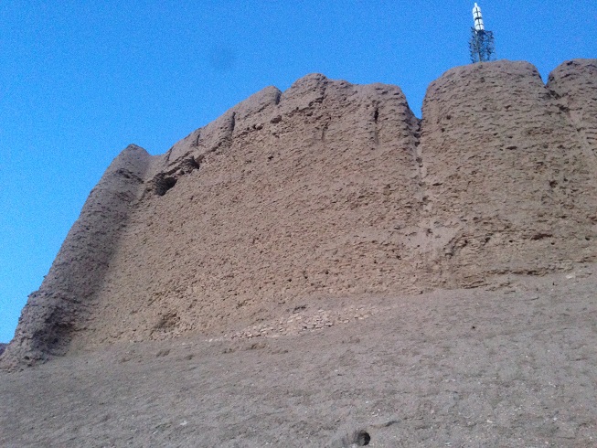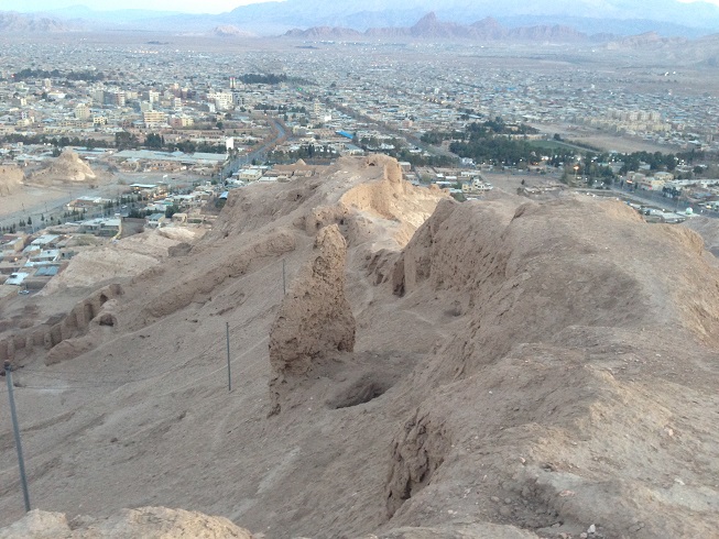 و باید آفرین گفت به زحمت کسانی که این بنا را بر این قله بلند ساخته اند همتی به سنگینی و عظمت هزاران تن گِل و خِشت، که آماده کرده و به آن بلندی آن حمل کرده اند، و همت شان به بلندی این قله بود، که عظمتی اینگونه ماندگار را رقم زدند. در حالی که حتی بالا رفتن و پایین آمدن از این کوه نیز خود سخت است، و اگر بر آن صعود کنی از بالای ترین نقطه این قله و ساختمان قلعه به داخل شهر از هر سو اشراف خواهی داشت، و اگر بر آن بایستی طلایه داران سپاه دشمن، از هر سو که وارد سرزمین کرمان شوند را مشاهده خواهی کرد، اکنون دور تا دور این قلعه را شهر فرا گرفته است؛ و برج و باروی پای این قلعه بر قله نشسته، خراب شده و خانه های بعضی از اهالی کرمان، و "حسینیه حضرت ابوالفضل" در حریم این سایت تاریخ و در پای آن شکل گرفته و حریم سایت باستانی قلعه اردشیر و اتشکده اناهیتا را در برگرفته اند.