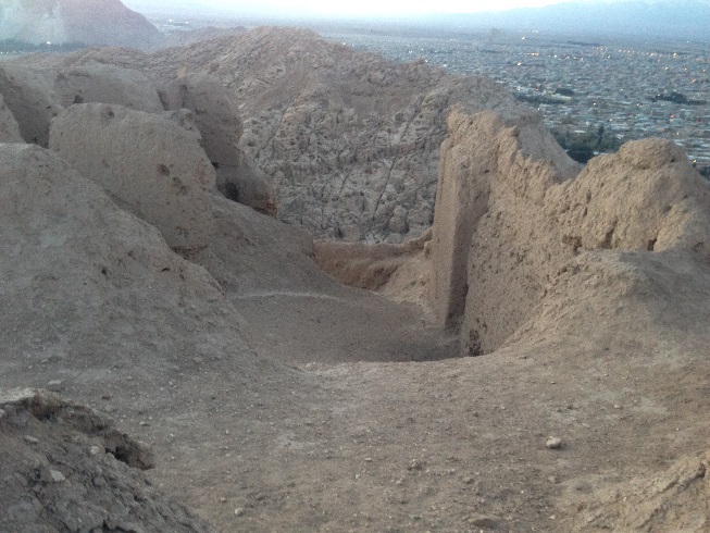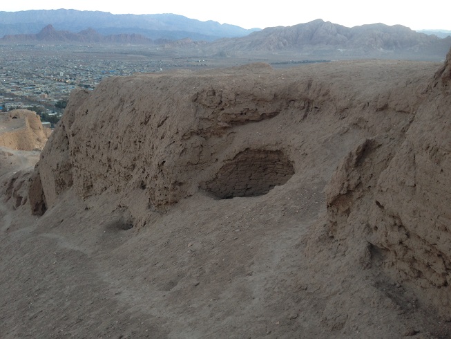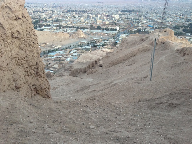 گذشته از این اشتباه فاحش، جای کنده کاری های زیادی در جای جای این محوطه تاریخی دیده می شود که حکایت از فعالیت کسانی دارد که به دنبال عتیقه جات می گشتند. این قلعه بر قله ایی قرار دارد که از هر سویش حالتی دارد، که هجوم دشمن را بر آن کم اثر می کند، هر چند برخی از وجه های این قله غیر قابل صعود تر است، و برخی راحت تر، که من از جناح سمت مسجد جامع کرمان، برای صعود اقدام کردم، که شاید از راحت ترین مسیرها به سمت قله و قلعه بود، وجه مقابل این مسیر از سمت دیگر قله، صخره ایی و دیواره است، در قسمت سمت راست مسیر صعودم که بیشترین لایه های دفاعی و دیوارها در آن قرار درد و در واقع ضربه پذیرترین مسیر، در اطراف قلعه است، که بیشترین استحکامات نیز در این قسمت قرار دارد، دیوارهایی که به صورت چند لایه از مرکزیت قلعه در بالاترین نقطه قله حفاظت می کنند و البته بیشترین ویرانی نیز در همین ناحیه اتفاق افتاده است، که ترمیم این قلعه تاریخی نیز از همین جهت شروع شده و ادامه دارد، که این امر حکایت از تصمیم مسولین سازمان میراث فرهنگی کشور برای حفظ و ترمیم این بنا دارد، تصمیمی دیرهنگام و در مقیاس کوچک.
