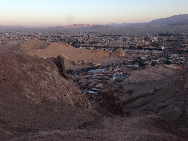 مقدار زیادی از ساعات روز 28 اسفند 1396 در مسیر جاده و شهرهای بین راه یزد – کرمان گذشت، دیدارهای مختصری از شهر بافق، زرند، و در نهایت نیز خورشید به محل غروب خود نزدیک شده بود، که وارد شهر باستانی کارمانیا شدیم، و در این ساعات پایانی روز، به علت شلوغی خیابان ها نتوانستیم، بازدیدی از دیدنی های این شهر داشته باشیم، و فقط موفق دور زدن در برخی از خیابان ها گردیدیم، و برای اولین بار با شکل و شمایل شهر باستانی کرمان که خیلی نشانی از قدمت خود ندارد، آشنا شدم، شهری که اینک مدرن است و در این ساعات غروب و شب قبل از سال تحویل و ورود به سال 1397، ترافیک شهری زیادی را تجربه می کند. لذا مایوس از اجرای برنامه دیدار از اماکن مد نظر در شهر، خود را به محل اقامت رسانده و استراحت را برای کسب انرژی برای روز بعد، به هر کار دیگری ترجیح دادیم، تا بتوانیم از ساعات پایانی باقی از سال 1396 در روز آتی (29 اسفند) استفاده بهتری کنیم.