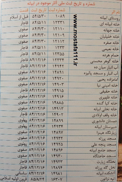 لیست بناهای ثبت شده ابیانه
