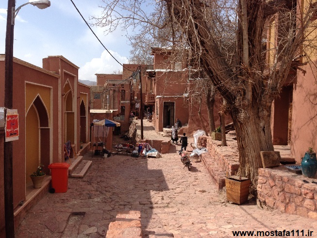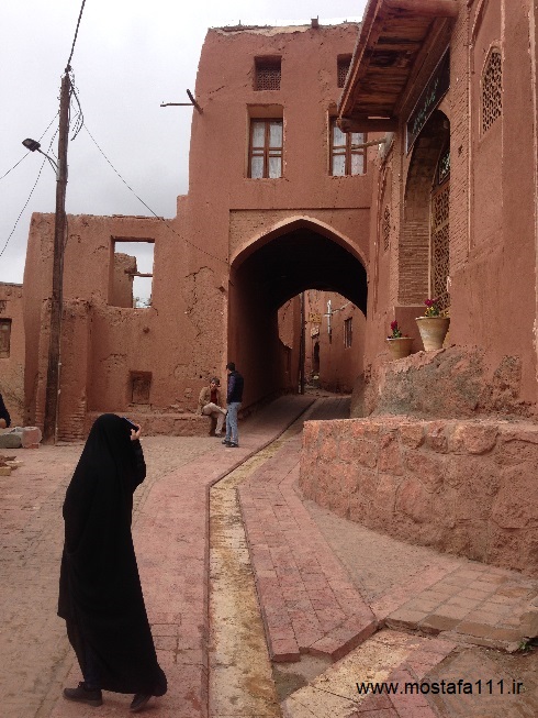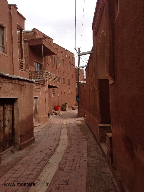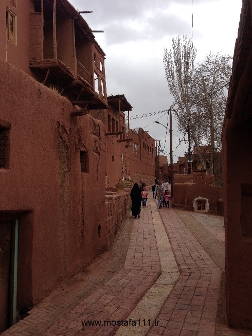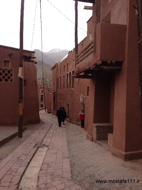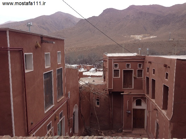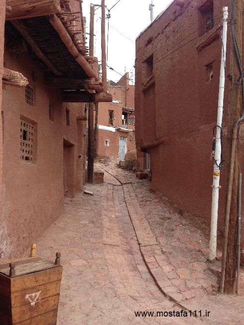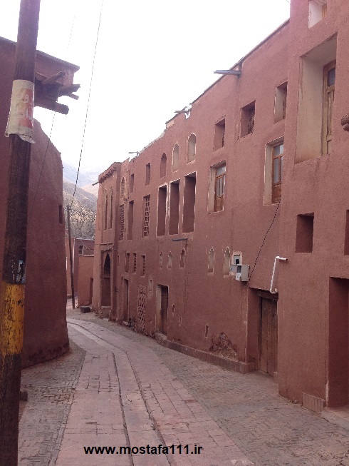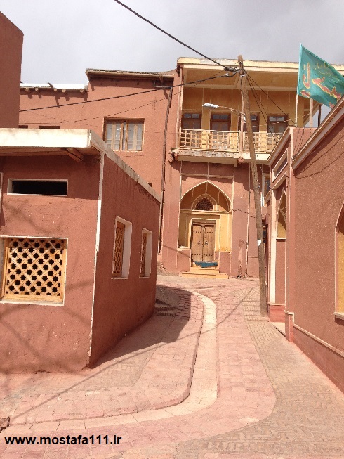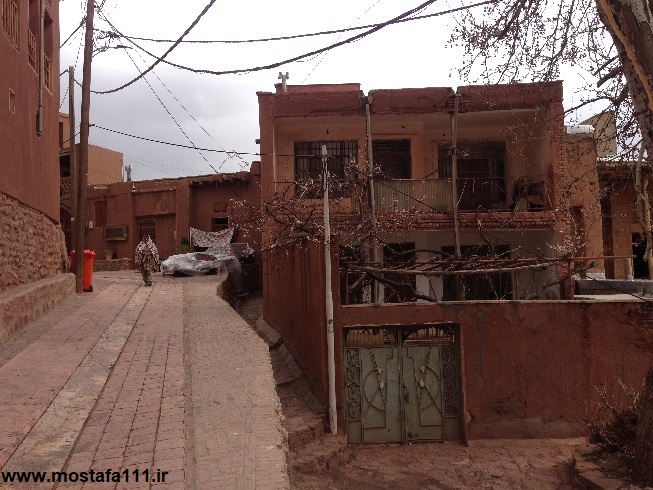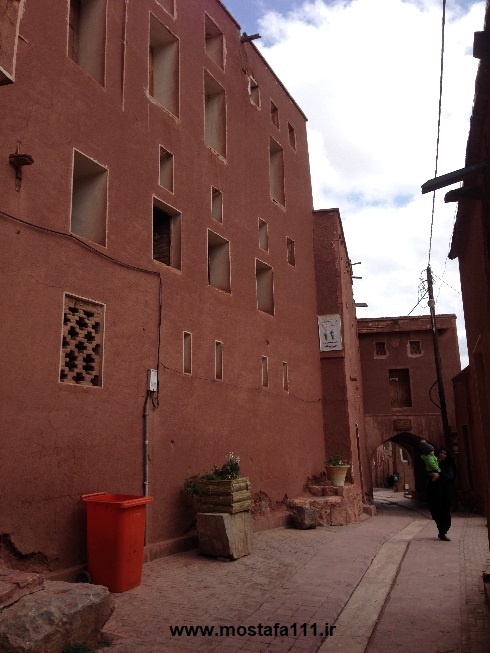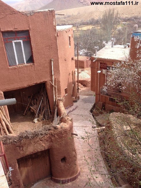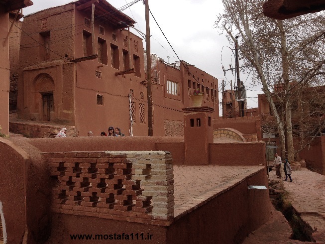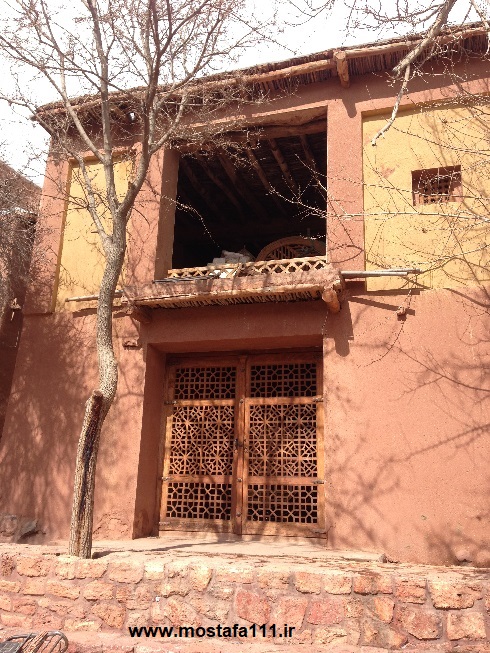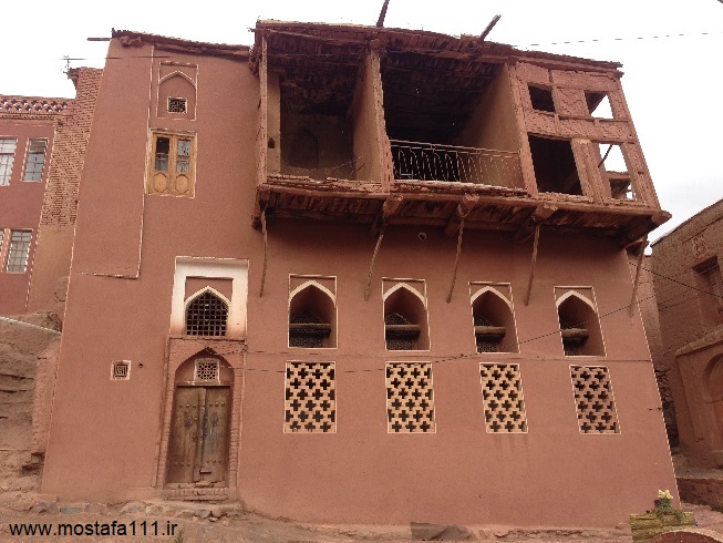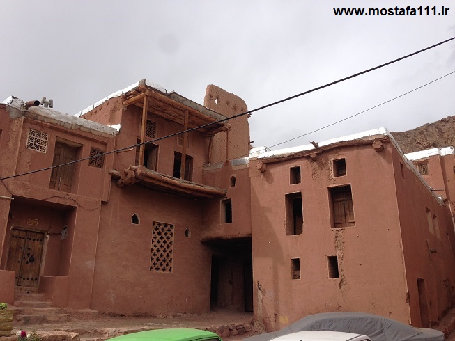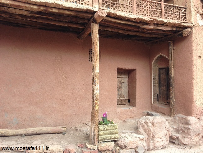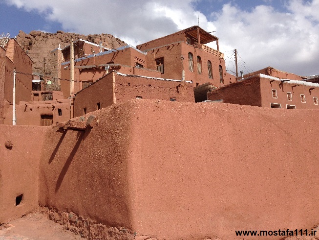 ولی اینجا در ابیانه با گِل سُرخ که معدنش در نزدیکی همان روستاست، دیوارهای شان را سرخ می کنند، آنچه بین مردم حاشیه نشین اطراف جی و مردم حاشیه نشین شهر صد دروازه در ایالت قومس مشترک است، و به رسوم ایرانیان باستان باز می گردد، تزیین خانه ها با همین خاک نرم و گِلی صاف و صیقلی بود، که متناسب با وجود معادن گِل رس، که در نقاط مختلف ایران، رنگی خاص خود را دارند، خانه ها به همان رنگ در آمدند؛ و اگرچه از لحاظ رنگ، خانه های مردم مناطق مختلف ایران متفاوت بودند، اما در این رسم زیبا، اشتراک داشتند، در استفاده از مصالح و تزیین مشترک بودند، ایرانیان خانه های خود را ابتدا با خشت و گِل می ساختند، و بعد برای افزایش دوام و بقایش، آنرا با کاهگل عایق بندی می کردند، و از کاهگِل (مخلوط گل رس و کاه حاصل از خرمنکوبی گندم و جو خود) برای پوشش آن استفاده می کردند، که این امر باعث می شد، بارش باران نتواند سازه اصلی خشت و گلی را شسته و بدان صدمه زده و با خود ببرد؛