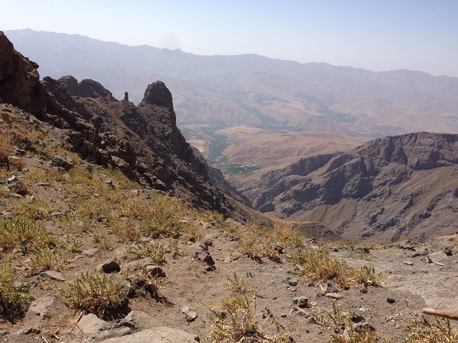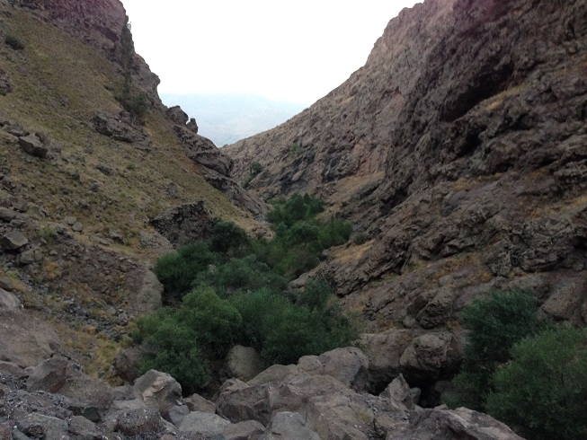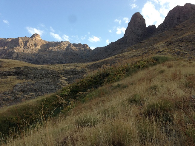 ساعت هفت و 46 دقیقه در حین صعود از این شیب، به سبزه زاری رسیدیم که علف های آن اکنون تا بالای زانو ارتفاع گرفته اند و همین سبزه زارها را این مردم می تراشیدند و خشک می کردند و به کف دره منتقل، و از آنجا به روستا منتقل می کردند، این سبزه زارها از بیرون زدن آب چشمه هایی شکل می گیرند که از نقطه در کمره دره بیرون می زند و خود را در اکثر موارد نمی توانده به دره و رود برسانند و از شدت کمی برخوردارند، از جمله گیاهان این سبزه زارها، رز وحشی است که هنگار عبور از رزها انگار می خواهند با خارهای شان دست های تو را بگیرد و نگهت دارد، و ناراحتند و نمی خواهند بی توجه به حرف هایشان از آنان عبور کنی و لذا دست و پاهایت را خارهای خود گرفته و نگهت می دارند و همین باعث زخمی شدن تو خواهد شد، میوه های این رزها قرمز و زیباست که اگرچه اکنون سفت است و زخیم ولی با خوردن سرما مثل خرمالوهای سفت نرم و خوردنی می شوند و در اکثر مواقع گل های شان بی بو اما زیباست.