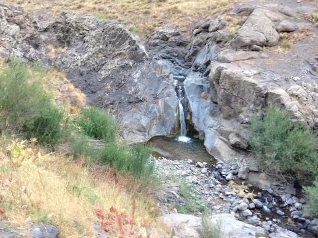 ساعت شش و 53 دقیقه به آبشاری رسیدیم که حدود سه چهار متر ارتفاع دارد و درست بالای این آبشار ما از یال سمت چپ دره به سوی قله ایی اوج گیری خود را آغاز کردیم که "جوهری [3] امامزاده" [4] و دو میل [5] در آن قرار دارد. سطح این یال اکثر خاکی است و با پوشش گیاهی مناسب و شیبی تند تند که باید با احتیاط کامل از آن عبور کرد، مشخص است. و احتمال پرت شدن و آسیب دیدن بسیار می باشد، و از آن نقاطی در کوهستان است که اولین اشتباه آخرین اشتباه خواهد بود، خصوصا وقتی ارتفاع زیادتر می شود که میزان افتاده خیلی افزایش خواهد یافت.