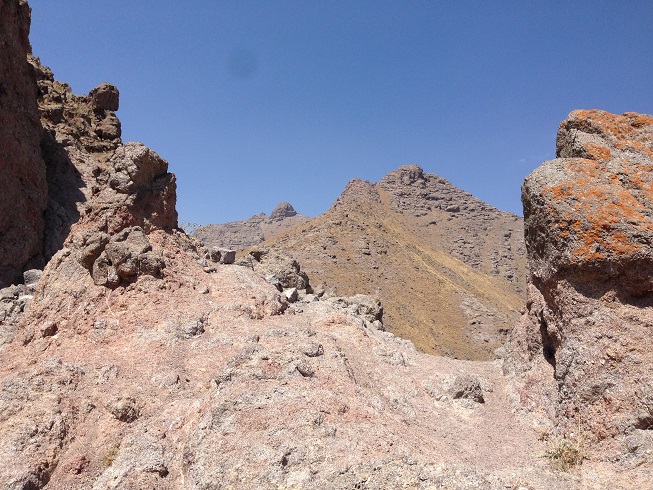 ساعت ده و 26 به سمت چشمه ترازان (Tarazan) و یا "چشمه اصلی" [8] حرکت کردیم مسیری پاکوب که نشان می دهد صدها سال است که از این پاکوب ها استفاه می شود و این همان مسیری است که از سمت روستای نویز به اینجا می آید و قدمت آن را میزان استفاده زیادی که از آن شده است روشن می کند.