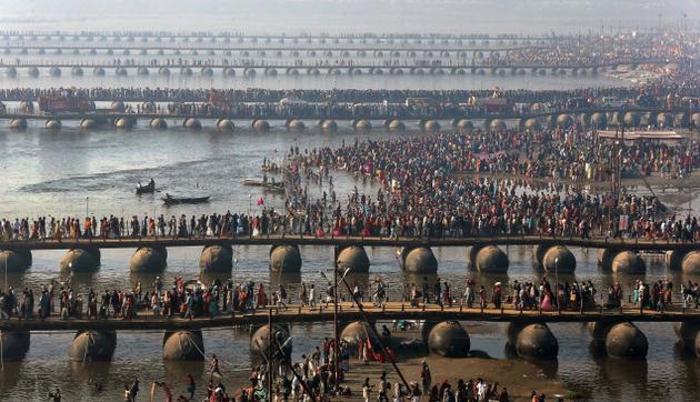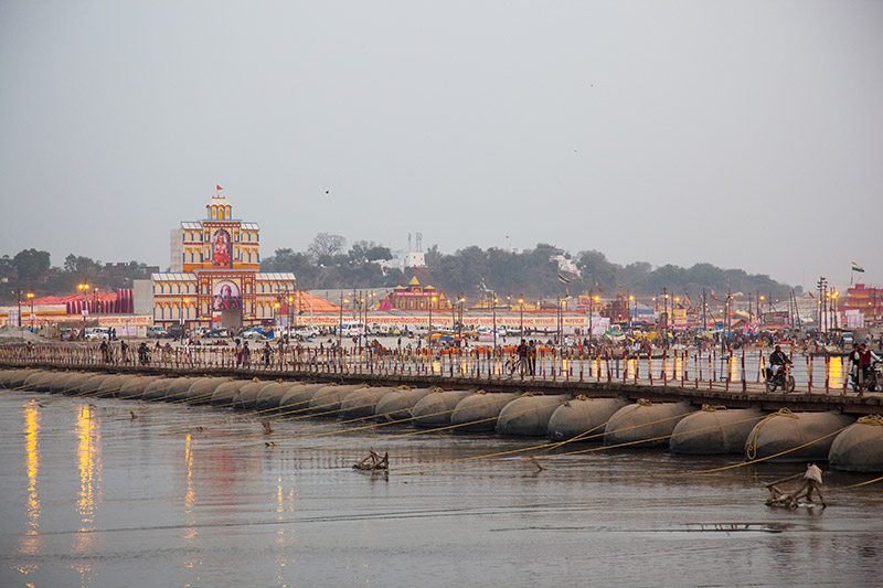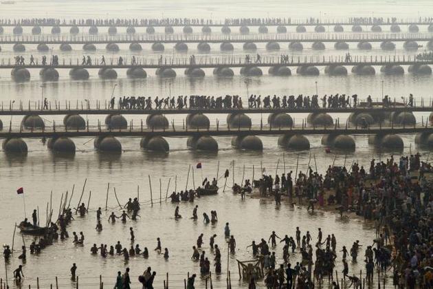 بر پل های موقت ارتش هند برای رسیدن به محل غسل