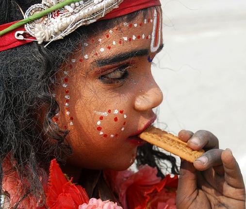 کودکی که به شکل خدایان تزیین شده