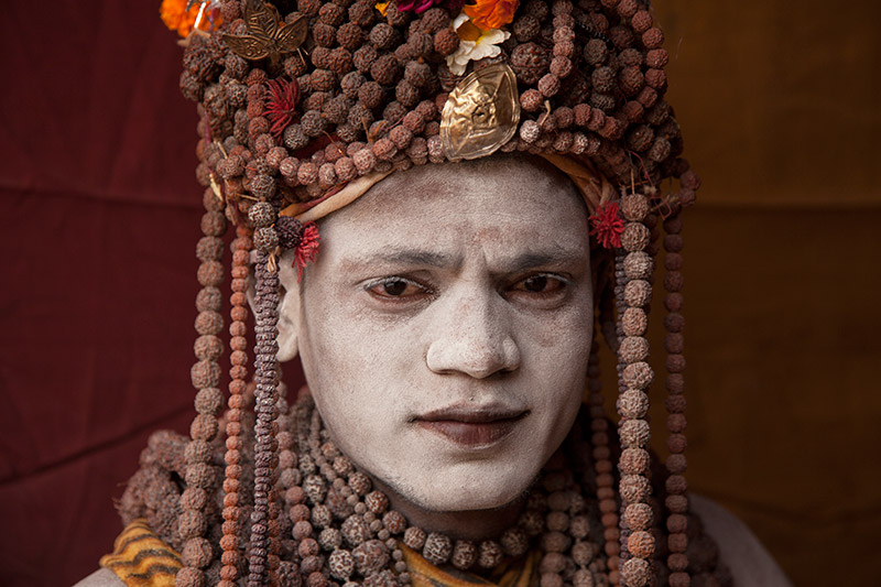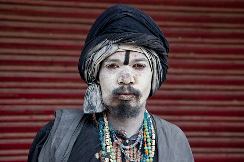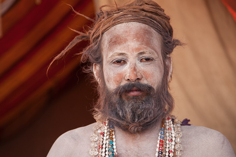 روحانی هندو خاکسترمال شده با تسبیح هایی به گردن