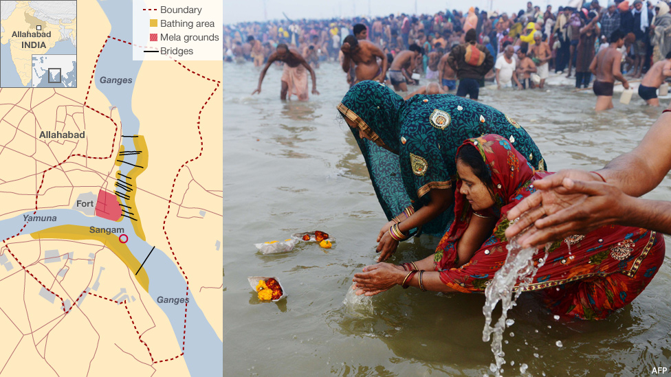 لذا از مهمترین اعمال در هنگام حضور در سنگام که محل کنونی اتصال دو رود مقدس یامونا و گنگ است، که در خلال این اجتماع مذهبی انجام می گیرد، زیرا هندوان معتقدند که با غسل در آب رود گنگ می توان خود را از گناهان پاک کرد، بعضی از آنان بر این اعتقادند که مرگ هر هندویی که در این منطقه صورت گیرد، باعث خلاصی او از رنج و عذاب، خواهد شد، که در تفکر هندویی همان چرخه آمدن و رفتن به این دنیا و یا همان تناسخ است، که با این مرگ شما از این رنج بی پایان رها خواهی شد و به سعادت (موکشا Moksha) و رستگاری ابدی دست خواهی یافت.