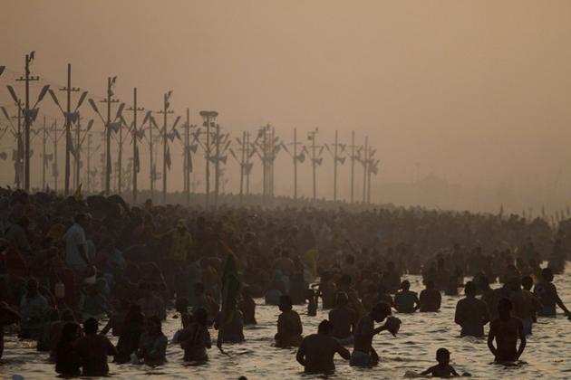 جمعیت زایرین غسل مقدس در گنگ کمبوملای 2013