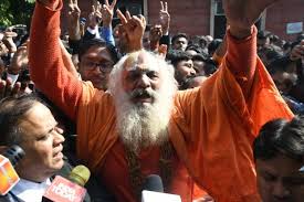 یک روحانی هندو در بین جمعیت تظاهر کننده