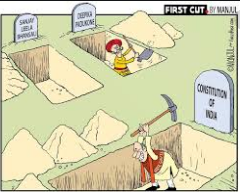 قانون اساسی هند که متضمن آزادی عقیده، و اندیشه و فرهنگ و تنوع بود، اکنون رو به سمت استبداد دینی و فرهنگی هندویسم دارد، افراط گرایان هندو با قطبی کردن فضای کشور، با تکیه بر احساسات پاک عمومی هندوها، آنرا به سمت تحکیم اندیشه های سیاسی - مذهبی و باستانی هندویسم، با وجهه افراطی خود پیش برده، و می روند تا آزادی را بعد از انقلاب بزرگ هند، از هندی ها گرفته، و اندیشه های دُگم و تروریستی و خشونت گرا را جایگزین اندیشه تساهل و تسامح بنیانگذار انقلاب هند، یعنی مهاتما گاندی کنند. متاسفانه هند اکنون کیسی است که باید در راستای پروژه انحراف از اهداف اولیه انقلابش، آنرا در روند مذهبی گرایی تندروها مورد مطالعه قرار داد، و روند دگردیسی را از آزادی، به سوی به بند شدن یک ملت به نظاره نشست.