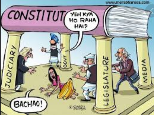 چهار ستون قانونگذار، رسانه ها ، دولت و سیستم عدالت که قانون اساسی بر سر است و حقوق زنان نادیده گرفته می شود