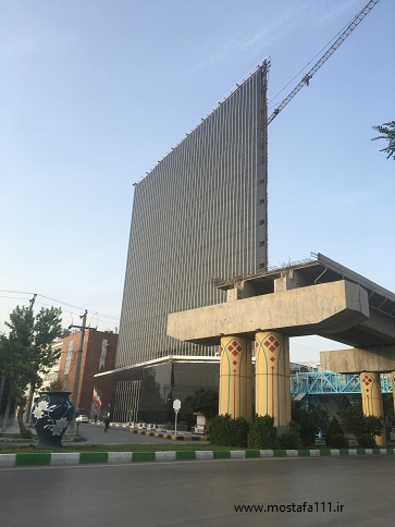 ساختمانی با طراحی مدرن، و پل قطار شهری، در حال ساخت در بلوار طاق بستان کرمانشاه