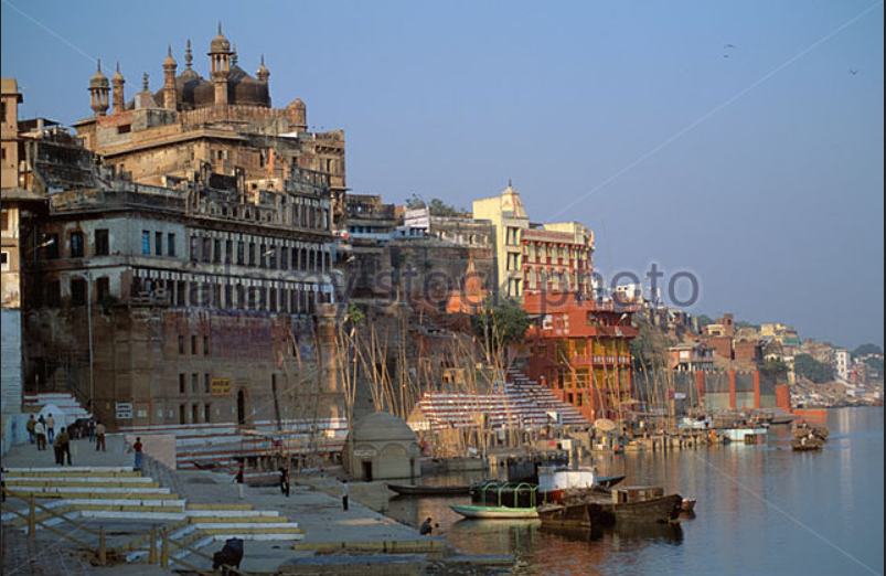 مسجد اورنگ زیب در این تصویر دیده می شود - ساحل رود گنگ در بنارس